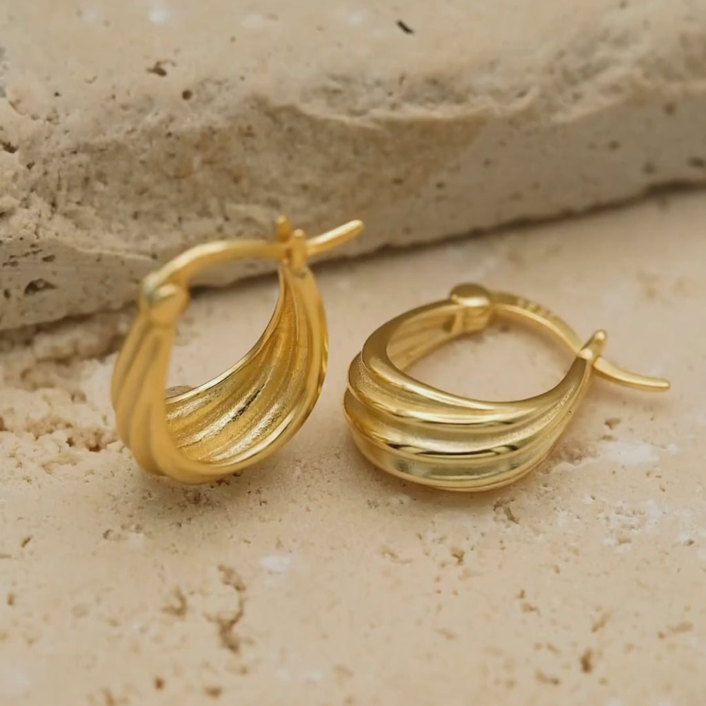 The multiple horizontal grooves add visual interest and modern sophistication, making Oria stand out from traditional smooth hoops while maintaining timeless appeal.Available in two stunning variants – pure 925 sterling silver for a classic cool look, or with luxurious 18-carat gold plating for warm, golden radiance.